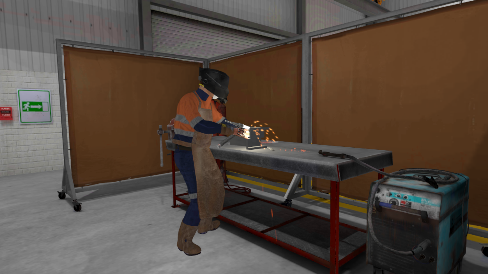 El simulador familiarizará a los alumnos con el entorno industrial y sus distintos elementos, como herramientas, zonas de trabajo, equipos de protección personal y vehículos, entre otros. Se le presentarán situaciones que entrañan riesgos que deberá evaluar e intentar mitigar.